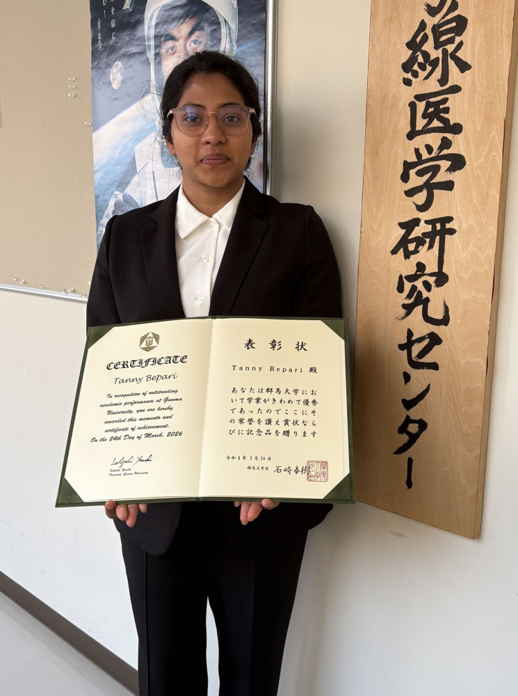 医理工レギュラトリーサイエンス学環の修士課程のTanny Bepariさんが、群馬大学学業最優秀賞(学長表彰)